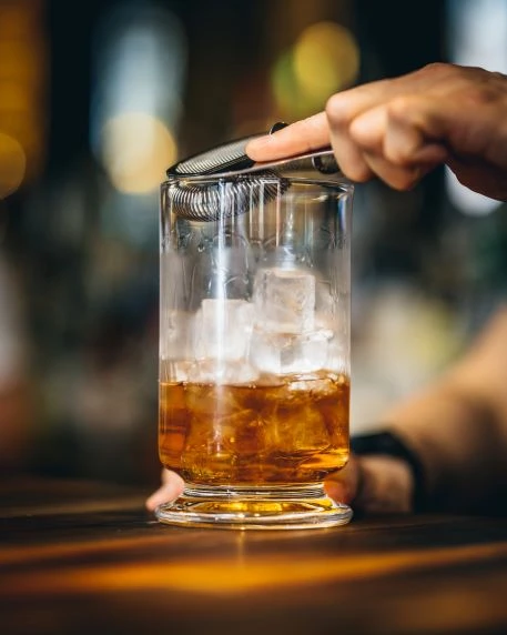 - Footed design with indented stem allowing for grip on the glass when stirring