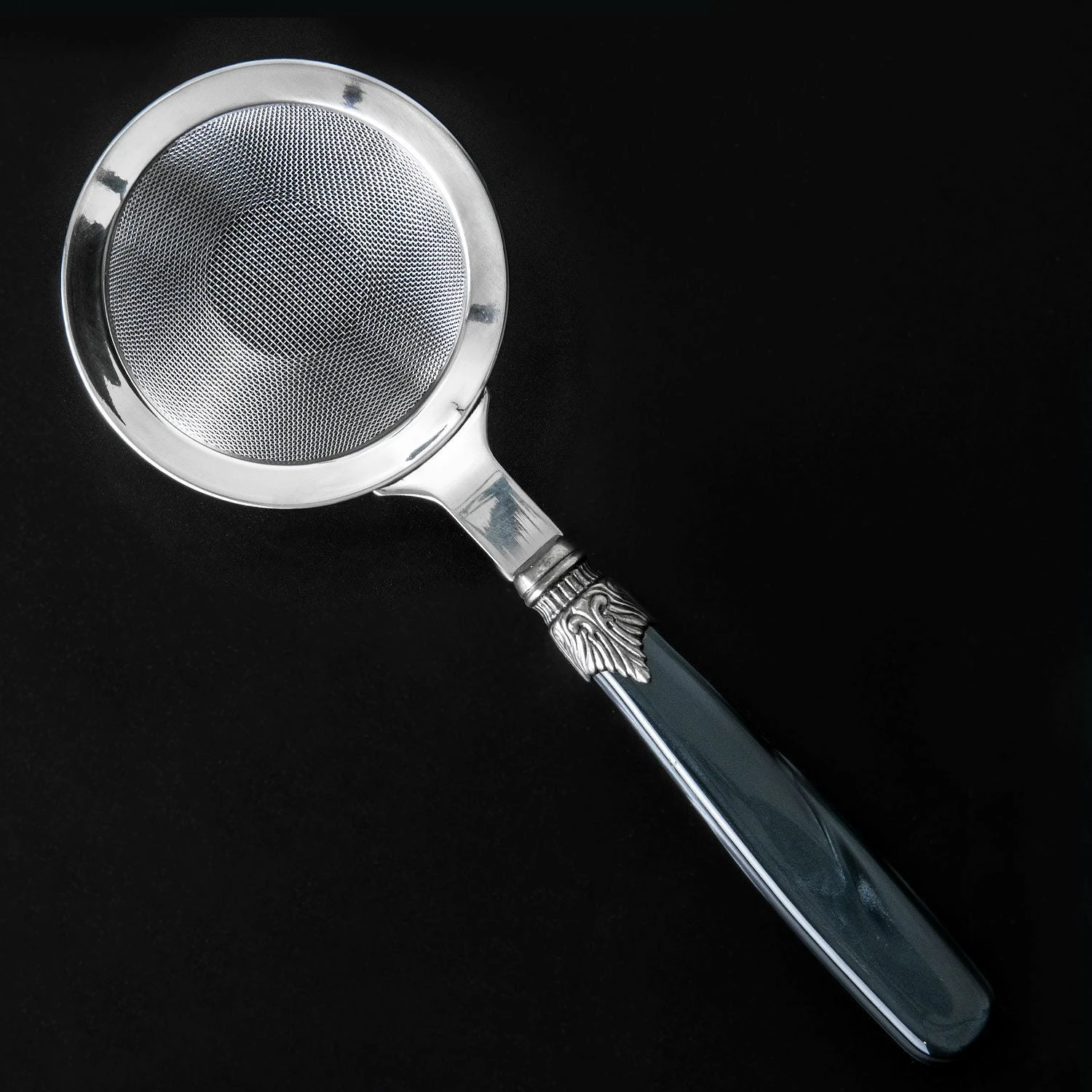 The Classico Fine Strainer offers a premium aesthetic for your mixology. A high grade stainless steel fine mesh head is mounted on a stunning back pearlised handle. These two parts are joined by a Neoclassical inspired steel clasp that adds a unique visual flourish to the piece.