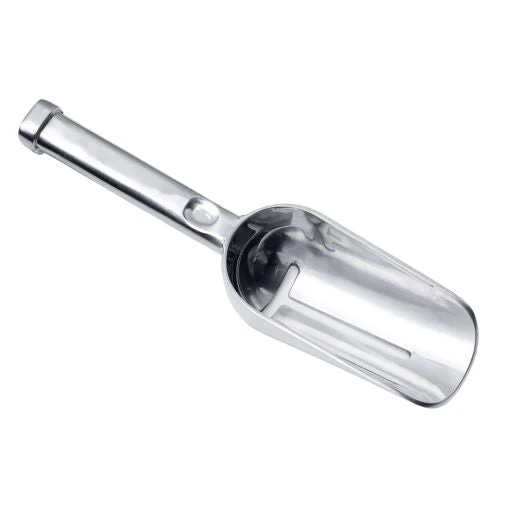 The Sallet Draining Ice Scoop is ideal for serving ice cubes and crushed ice. The T shaped hole allows small ice pieces and water to empty from the scoop preventing them from making it to the glass or shaker and diluting the drink.